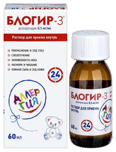 БЛОГИР-3® не усиливает действие алкоголя на центральную нервную систему, тем не менее, во время пострегистрационного применения были зарегистрированы случаи непереносимости алкоголя и алкогольного опьянения. Поэтому дезлоратадин одновременно с алкоголем следует применять с осторожностью.