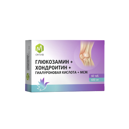 М актив глюкозамин хондроитин мсм с гиалуроновой кислотой и пиперином 60 шт. таблетки массой 600 мг/блистер