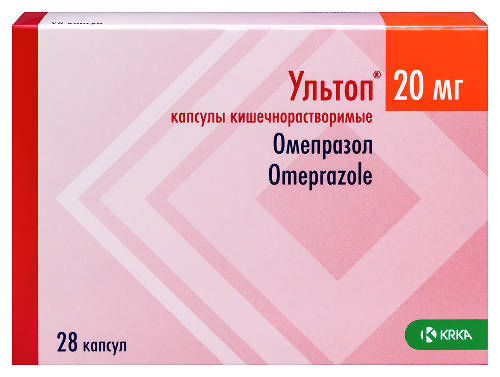 Действующее вещество: омепразол 20 мг.