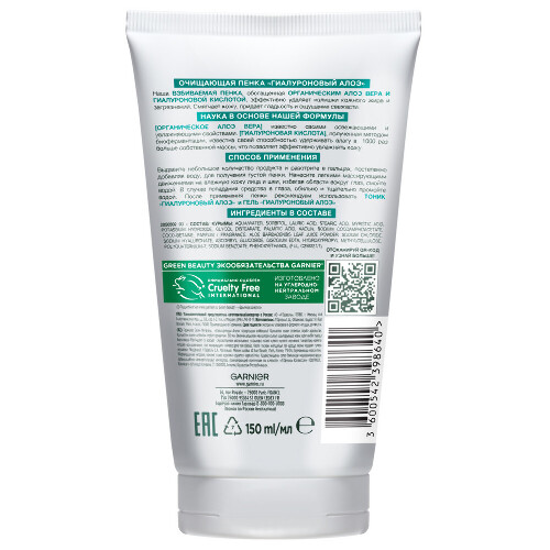 ГАРНЬЕР SN АЛОЭ-ПЕНКА ОЧИЩАЮЩАЯ ГИАЛУРОНОВАЯ ДЛЯ УМЫВАНИЯ ДЛЯ НОРМАЛЬНОЙ И ЧУВСТВИТЕЛЬНОЙ КОЖИ - для нормальной и чувствительной кожи