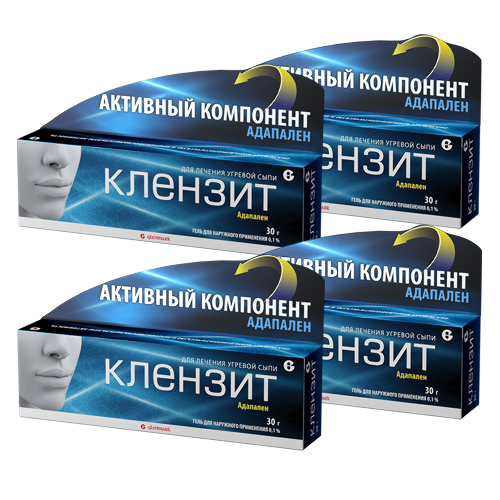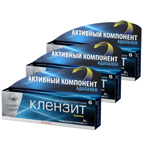 Клензит 0,1% гель является лекарственным препаратом для лечения акне и прыщей. Он содержит адапален, который обладает комедонолитической и противовоспалительной активностью, нормализует процессы кератинизации и эпидермальной дифференцировки. Клензит гель легко наносится на кожу и быстро впитывается, не оставляя жирных следов. Его можно использовать как для местного нанесения на отдельные высыпания, так и для обработки всей проблемной зоны. Терапевтический эффект развивается после 4-8 недель лечения, стойкое улучшение после 3-х месячного лечения.