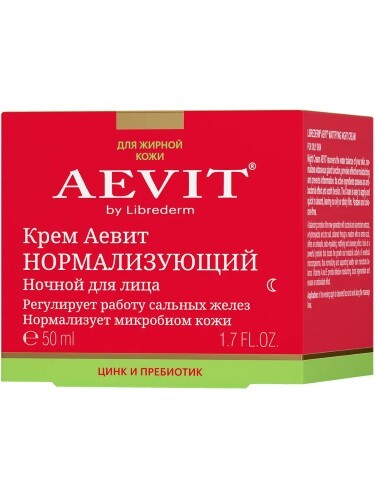 Крем нормализующий ночной АЕВИТ® - Крем нежной текстуры легко наносится и быстро впитывается, не оставляет жирной или липкой пленки.