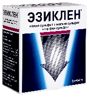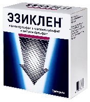 Препарат Эзиклен® содержит действующие вещества калия сульфат + магния сульфат + натрия сульфат, относится к группе лекарственных средств «осмотическое слабительное средство». Механизм действия препарата в первую очередь обусловлен ограниченным по насыщаемости процессом активного транспорта сульфатов. При достижении порога насыщения всасывания сульфаты остаются в просвете кишечника. Осмотический эффект неабсорбированных сульфатов и прием внутрь значительного объема воды вызывает задержку воды в кишечнике, что обеспечивает слабительное действие, вызывая обильную водянистую диарею, и приводит к очищению кишечника.