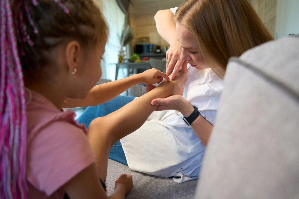 Первое и самое важное — сохраняйте спокойствие. Паника только усилит тревогу ребёнка. Опуститесь на его уровень, говорите мягким успокаивающим голосом. Теперь внимательно осмотрите пострадавшую область. Ниже перечисляем, на что нужно обратить внимание.