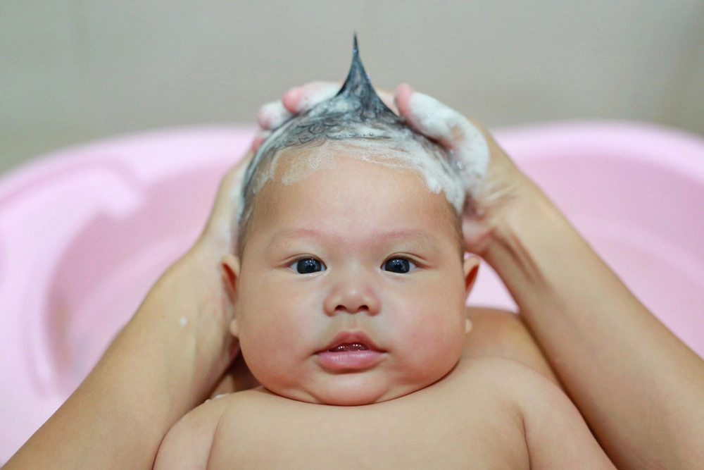 Второй способ: размягчение во время купания. Нанесите на участки с молочными корочками взбитый шампунь. Пусть малыш немного поплавает (примерно 15 минут). За это время корочки побелеют и размокнут. После этого, так же как и в первом способе, аккуратно помассируйте кожу головы и удалите только те корочки, которые легко отходят [5–6].