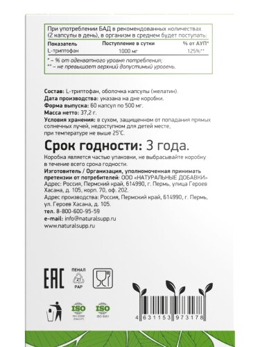 Бренд NATURALSUPP - это российский производитель витаминно-минеральных комплексов и биологически активных добавок на основе натуральных природных компонентов. Производство оснащено современным автоматизированным оборудованием по стандартам GMP и обеспечивает высочайший уровень качества и безопасности выпускаемой продукции.