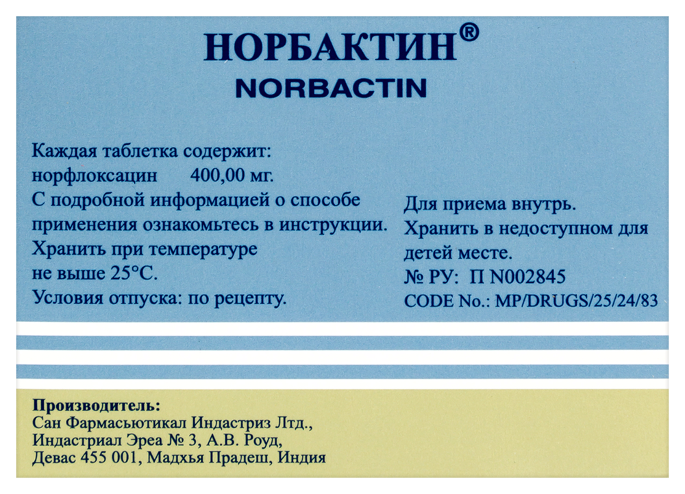 • Производителем Норбактин является – Ранбакси Лабораториз Лимитед (Девас)
