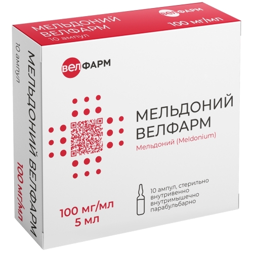 Милдронат 100 мг/мл раствор для внутривенного внутримышечного и парабульбарного введения 5 мл ампулы 5 шт.Эйч Би Эм Фарма с.р.о./ Гриндекс АО