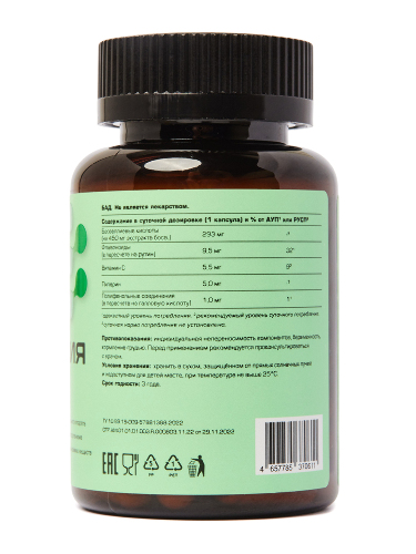 в качестве биологически активной добавки к пище - дополнительного источника витамина С, источника флавоноидов, содержащей пиперин, босвеллиевые кислоты. Содержит галловую кислоту.