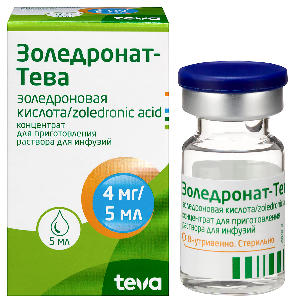 поводу остеопороза. Поперечные или короткие косые переломы могут локализоваться в любом месте на протяжении бедренной кости от малого вертела до надмыщелковой ямки. Описанные переломы возникают после минимальной травмы или самопроизвольно. Некоторые пациенты испытывают боли в бедре или в паху, часто сопровождающиеся признаками стрессовых переломов по результатам визуализирующих диагностических исследований, которые возникают за недели и месяцы до развития полного (завершенного) перелома бедренной кости. Нередко переломы возникают с обеих сторон, поэтому при возникновении перелома бедренной кости у пациента, получающего терапию бисфосфонатами, следует провести обследование контрлатеральной бедренной кости. Сообщалось также о медленном заживлении (срастании) этих переломов. Были получены сообщения об атипичных переломах бедренной кости у пациентов, получавших лечение золедроновой кислотой, однако причинно-следственная связь этих переломов с терапией золедроновой кислотой не была установлена. Решение о прекращении терапии препаратом Золедоонат-Тевау пациентов с подозрением на атипичный перелом бедренной кости до проведения обследования должно основываться на индивидуальной оценке соотношения ожидаемой пользы к возможному риску. Пациентов, получающих терапию препаратом Золедэонат-Тева, следует предупредить о необходимости сообщать медицинскому персоналу о любых болях в бедре или паховой области; каждый пациент, предъявляющий жалобы на такие симптомы, должен быть обследован для выявления возможного незавершенного (неполного) перелома бедренной кости.