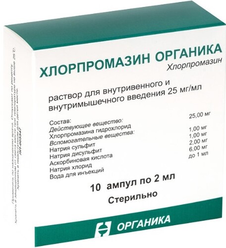 активное вещество: хлорпромазина гидрохлорид в пересчете на 100% вещество (аминазин) - 25,0 мг;