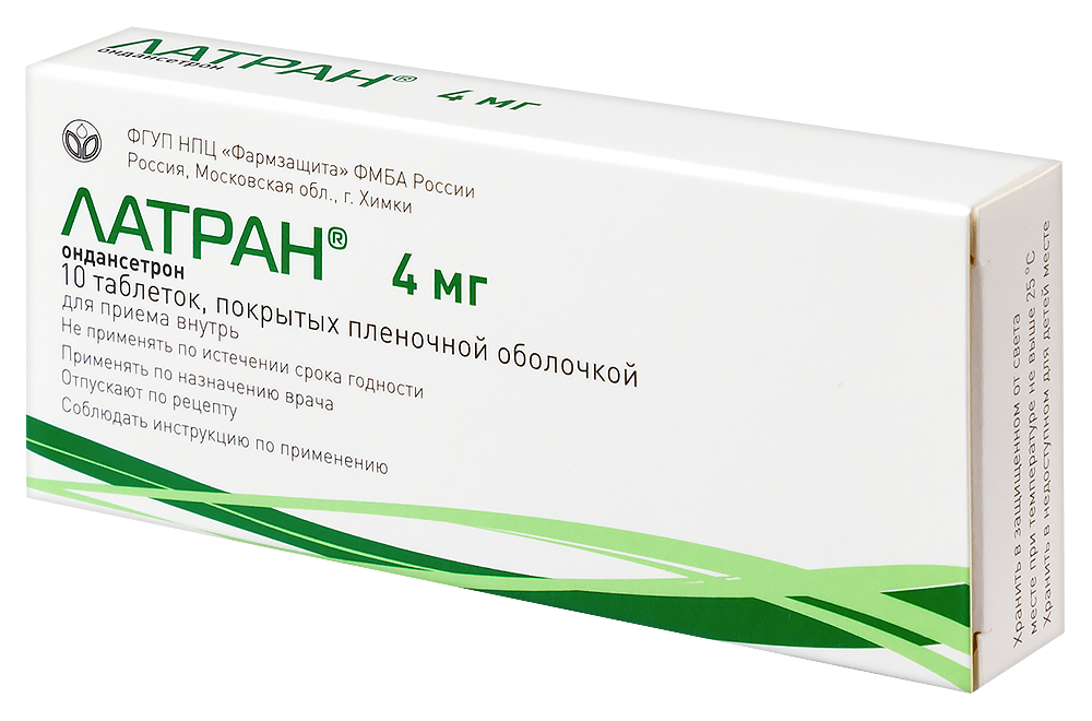 Ондансетрон не следует назначать детям с площадью поверхности тела менее 0,6 м2. Ондансетрон нельзя применять для профилактики и лечения послеоперационной тошноты и рвоты у детей после операций на органах брюшной полости. В случае возникновения побочных реакций со стороны нервной системы пациентам рекомендуется воздержаться от управления автомобилем и другими механизмами, а также занятий видами деятельности, требующими концентрации внимания, напряжения психомоторных функций. Влияние лекарственного препарата на способность управлять транспортными средствами, механизмами Сведения о неблагоприятном влиянии лекарственного препарата Латран? на способность управлять транспортными средствами и механизмами отсутствуют. Возможны побочные реакции со стороны нервной системы в виде головной боли, головокружения, экстрапирамидных нарушений, преходящем нарушении остроты зрения. Это следует учитывать при выполнении вышеуказанных действий.