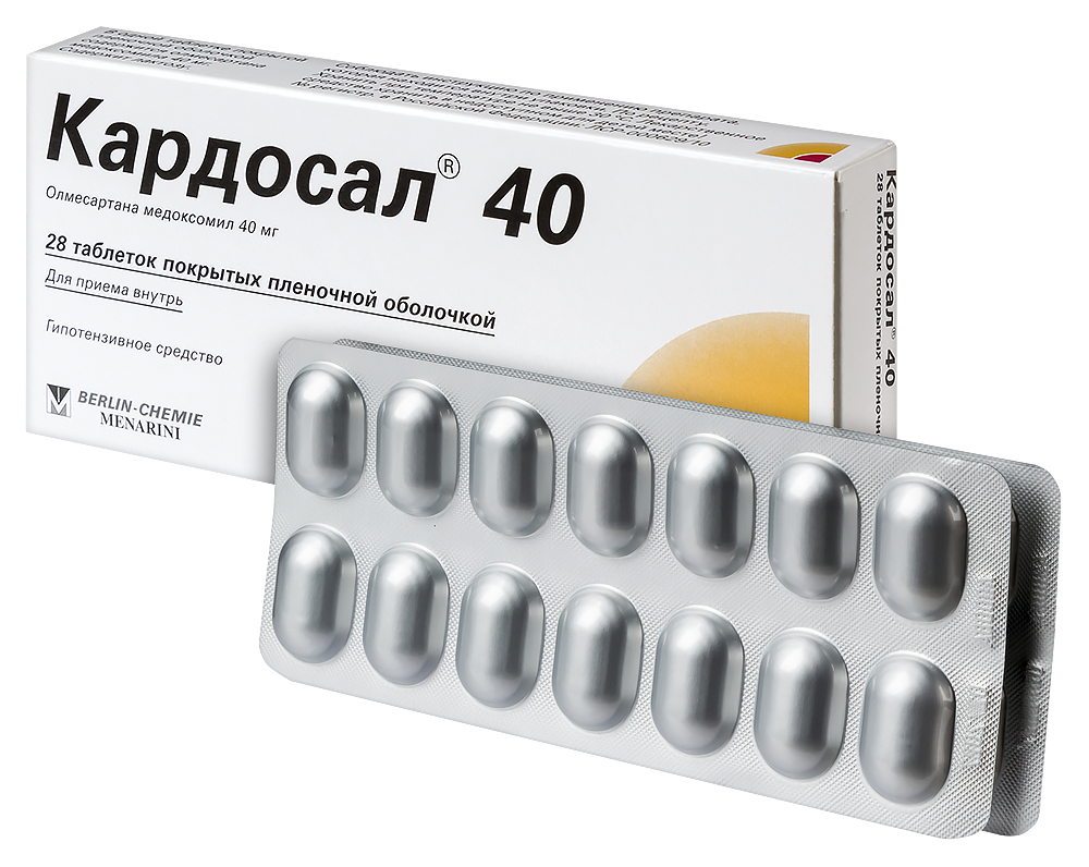Симптоматическая артериальная гипотензия, особенно после приема первой дозы препарата, может встречаться у пациентов со сниженным ОЦК и/или сниженной концентрацией натрия вследствие интенсивной терапии диуретиками, ограничения потребления соли с пищей при диетическом питании, а также вследствие диареи или рвоты. Соответствующие факторы следует устранить до начала применения препарата Кардосал® плюс. Тиазидные диуретики, включая гидрохлоротиазид, могут явиться причиной нарушения ОЦК или водно-электролитного баланса сыворотки крови (включая гипокалиемию, гипонатриемию и гипохлоремический алкалоз). Симптомами-предвестниками являются: сухость слизистой оболочки полости рта, жажда, слабость, сонливость, беспокойство, миалгия или судороги, мышечная слабость, артериальная гипотензия, олигурия, тахикардия, тошнота и рвота (см. раздел Побочное действие). Самая высокая степень риска развития гипокалиемии существует у пациентов с циррозом печени, у пациентов при проведении форсированного диуреза и у тех пациентов, которые одновременно принимают глюкокортикостероиды или АКТТ (см. раздел Взаимодействие с другими лекарственными средствами). И, наоборот, по причине антагонизма содержащегося в препарате Кардосал® плюс олмесартана медоксомила, проявляемого в отношении рецепторов ангиотензина II (AT1), может иметь место гиперкалиемия - прежде всего, у пациентов со снижением функции почек и/или хронической сердечной недостаточностью, а также пациентов с сахарным диабетом. У пациентов с факторами риска рекомендуется регулярный контроль концентрации калия в сыворотке крови. Данных о том, может ли олмесартана медоксомил уменьшать гипонатриемию, вызванную диуретиками или препятствовать ее развитию, нет. При жаркой погоде у пациентов склонных к отекам может иметь место дилюционная гипонатриемия. Снижение концентрации хлоридов в целом выражено незначительно и лечения обычно не требует. Тиазиды могут уменьшать выведение почками ионов кальция и также приводить к преходящему незначительному повышению концентрации кальция в сыворотке крови при отсутствии в анамнезе нарушений его обмена. Гиперкалыгиемия может указывать на скрытый гиперпаратиреоз. Перед исследованием функции паращитовидных желез тиазиды следует отменить. Доказано, что тиазидные диуретики повышают выведение почками ионов магния, что может приводить к гипомагниемии. У пациентов, у которых сосудистый тонус и функция почек зависят в большой степени от активности РААС (например, у пациентов с тяжелой хронической сердечной недостаточностью или нарушением функции почек, включая стеноз почечной артерии), лечение другими средствами, влияющими на РААС, связано с возможностью развития острой артериальной гипотензии, азотемии, олигурии или, в редких случаях, острой почечной недостаточности. Возможность сходного действия не может быть исключена при применении антагонистов рецепторов ангиотензина П. Имеется повышенный риск развития тяжелой артериальной гипотензии и почечной недостаточности в том случае, если пациент с двухсторонним стенозом почечных артерий или стенозом артерии единственной функционирующей почки получает терапию лекарственными средствами, влияющими на РААС. При применении препарата Кардосал® плюс у пациентов с нарушением функции почек рек