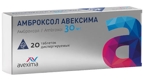 Активное вещество: амброксола гидрохлорид 30,0 мг.