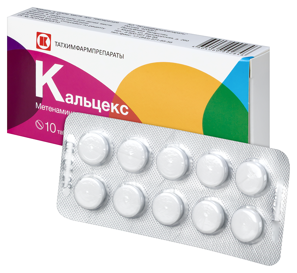 1 таблетка содержит: Действующее вещество: метенамина кальция хлорида декагидрат (кальцекс) - 500 мг. Вспомогательные вещества: тальк, кальция стеарат.
