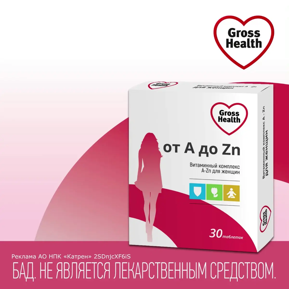 Gross health витаминный комплекс а-zn для женщин 30 шт. таблетки, покрытые оболочкой массой 1100 мг