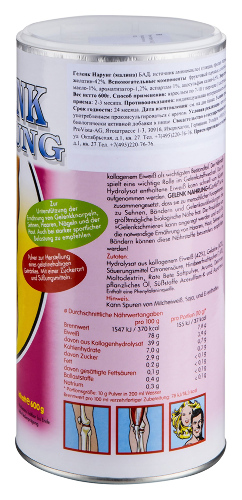Геленк Нарунг Малина - это биологически активная добавка (БАД) к пище. Порошок со вкусом малины. Это уникальная смесь аминокислот и пектинов, мощного питания для хрящевой ткани суставов и межпозвоночных дисков, а также средство для активизации выработки внутрисуставной (синовиальной) жидкости. Геленк Нарунг близок к биологическому составу сухожилий, хрящей, связок и позволяет в короткие сроки обеспечить регенерацию хрящевой ткани менисков, межпозвоночных дисков, укрепление суставно-связочного аппарата позвоночника и других хрящевых поверхностей крупных и мелких суставов. Геленк Нарунг (гидролизат коллагена) содержит аминокислоты, способствующие восстановлению и укреплению тканей, что важно после травм и в послеоперационный период.