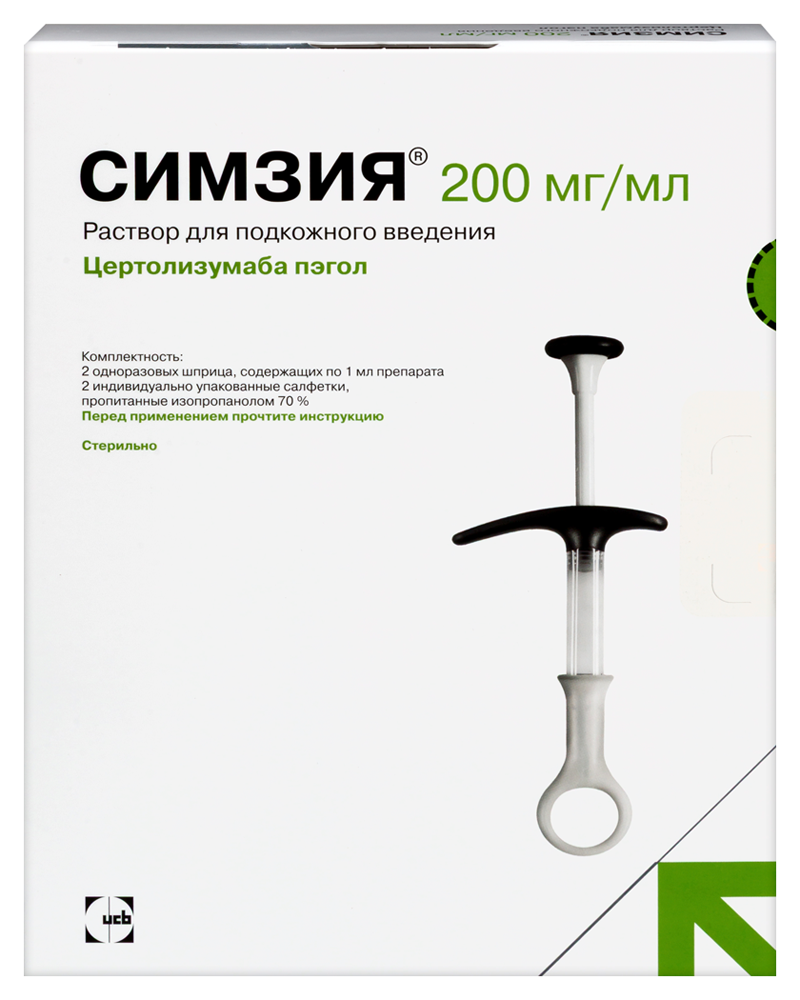 Сообщалось о случаях реактивации вирусного гепатита В у пациентов, являющихся хроническими носителями данного вируса (в т.ч. имеющих положительный поверхностный антиген), которые получали ингибиторы ФНО?, включая препарат Симзия®. В некоторых случаях заболевание имело летальный исход. Перед назначением препарата Симзия® пациенты должны пройти обследование для выявления вируса гепатита В. Пациентам, у которых результаты тестов на наличие вируса гепатита В оказались положительными, должна быть рекомендована консультация специалиста в лечении гепатита В.