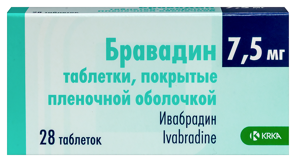 Нарушения сердечного ритма Препарат Бравадин неэффективен при лечении или для профилактики аритмии, его эффективность снижается при возникновении тахиаритмии (например, желудочковой или наджелудочковой тахикардии). Применение препарата Бравадин не рекомендуется у пациентов с фибрилляцией предсердий (мерцательная аритмия) или другими видами аритмий, связанных с функцией синусового узла. При применении препарата Бравадин рекомендуется проводить клиническое наблюдение за пациентами на предмет выявления фибрилляции предсердий (пароксизмальная или постоянная форма), включающее исследование ЭКГ при наличии клинических показаний (например, ухудшение течения стенокардии, появление ощущения сердцебиения, нерегулярность сердечного ритма). Риск развития фибрилляции предсердий может повышаться у пациентов с ХСН, принимающих препарат Бравадин. Фибрилляция предсердий чаще встречалась среди пациентов, одновременно принимающих ивабрадин с амиодароном или антиаритмическими препаратами I класса. Пациенты с ХСН и нарушениями внутрижелудочковой проводимости (блокада левой или правой ножки пучка Гиса) и желудочковой диссинхронией должны находиться под тщательным наблюдением. АV блокада II степени Применение препарата Бравадин не рекомендуется у пациентов с AV блокадой II степени. Применение у пациентов с брадикардией Применение препарата Бравадин противопоказано пациентам с ЧСС менее 60 уд/мин в состоянии покоя до начала терапии. Если при применении препарата Бравадин ЧСС в покое урежается менее 50 уд/мин или у пациента отмечаются симптомы, связанные с брадикардией (головокружение, повышенная утомляемость или выраженное снижение АД), дозу препарата необходимо уменьшить. Если при снижении дозы препарата Бравадин ЧСС остается менее 50 уд/мин или сохраняются симптомы, связанные с брадикардией, терапию препаратом Бравадин следует прекратить. Комбинированное применение в составе антиангиналъной терапии Одновременное применение препарата Бравадин с БМКК, урежающими пульс (верапамил, дилтиазем) не рекомендуется. При одновременном применении с нитратами или БМКК, производными дигидропиридина (амлодипин), изменения профиля безопасности проводимой терапии не отмечалось. Не установлено, что одновременное применение с БМКК, производными дигидропиридина, повышает эффективность ивабрадина. Хроническая сердечная недостаточность Возможность применения препарата Бравадин рассматривается только у пациентов со стабильным течением ХСН. При применении препарата Бравадин у пациентов с ХСН IV функционального класса по классификации NYHA следует соблюдать осторожность в связи с ограниченным количеством данных по применению у этой группы пациентов. Инсульт Не рекомендуется применение препарата Бравадин сразу после перенесенного инсульта в виду отсутствия данных по эффективности и безопасности в данный период. Зрительные функции Препарат Бравадин влияет на функцию сетчатки глаза. В настоящее время не было выявлено токсического воздействия на сетчатку глаза, однако влияние препарата Бравадин на сетчатку глаза при длительном применении (свыше 1 года) на данный момент неизвестно. При возникновении каких-либо нарушений зрительного восприятия, не описанных в настоящей инструкции, применение препарата Бравадин следует прекратить