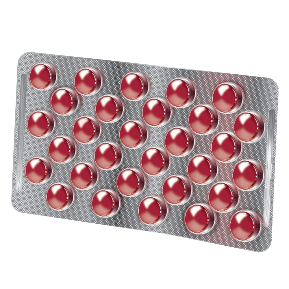Круглые, двояковыпуклые таблетки, покрытые оболочкой, красного цвета. Допускается незначительная неоднородность окрашивания, степени глянцевости и наличие незначительных вкраплений