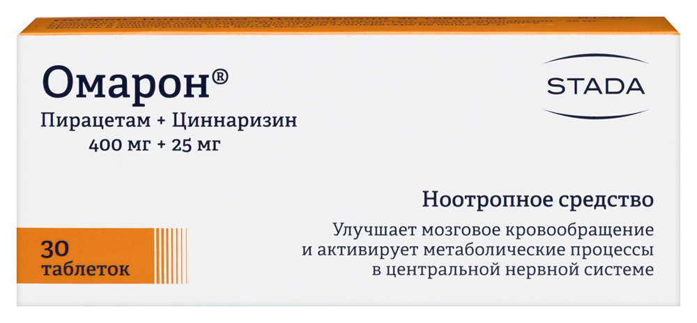 Действующие вещества: пирацетам 400 мг; циннаризин 25 мг;