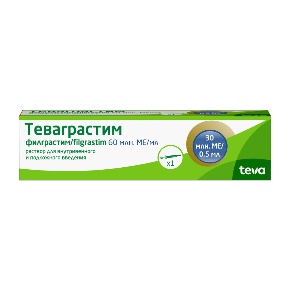 Раствор для внутривенного и подкожного введения 60 млн. МЕ/мл - по 0,5 мл (30 млн. ME, что соответствует 300 мкг филграстима) препарата в стеклянном шприце одноразового использования, градуированном до 1 мл (деления шкалы 0,1 мл) с фиксированной инъекционной иглой, покрытой защитным колпачком с резиновой вставкой. Шприц оборудован дополнительно устройством безопасности иглы - 1 шт.в уп.