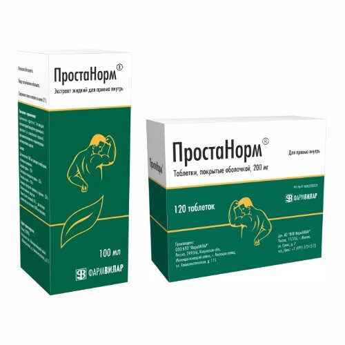 Простанорм экстракт - это лекарственный препарат растительного происхождения, содержащий спиртовый экстракт зверобоя травы, золотарника канадского травы, солодки корней, эхинацеи пурпурной корневищ с корнями. Препарат оказывает выраженное простатотропное действие за счет противовоспалительного, анальгезирующего, бактериостатического (стафилококки, энтерококки) эффекта. Простанорм® улучшает микроциркуляцию тканей предстательной железы, показатели эякулята (в т.ч. подвижность сперматозоидов) при патозооспермии и секрета предстательной железы на почве хронического простатита; нормализует мочеиспускание. Рекомендуется в комплексной терапии хронического простатита . Курс лечения до 4-6 недель. Перед применением рекомендуется проконсультироваться с врачом.