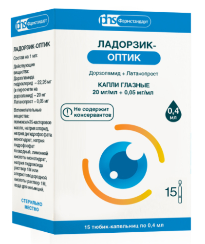 Активные вещества: латанопрост- 0,05 мг, тимолола малеат в пересчете на тимолол - 5,0 мг;