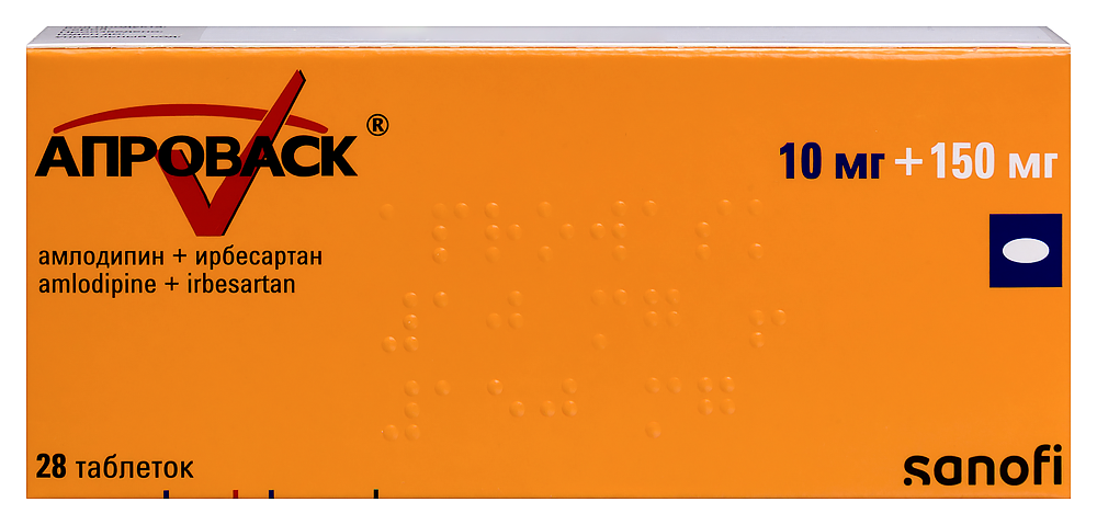 Чрезмерное снижение АД: пациенты с гиповолемией и гипонатриемией Ирбесартан редко вызывал чрезмерное снижение АД у пациентов с артериальной гипертензией без другой сопутствующей патологии. Как и при приеме ингибиторов АПФ, может ожидаться чрезмерное снижение АД с соответствующей симптоматикой у пациентов с гиповолемией и гипонатриемией, к которым относятся пациенты, которым проводится интенсивная диуретическая терапия, и/или пациенты с ограничениями в потреблении поваренной соли или пациенты, находящиеся на гемодиализе. Гипонатриемия и гиповолемия должны быть скорректированы перед началом лечения препаратом Апроваск или следует рассмотреть вопрос о применении более низких начальных доз. Пациенты с хронической сердечной недостаточностью В долгосрочном плацебо-контролируемом исследовании (PRAISE-2) амлодипина у пациентов с хронической сердечной недостаточностью III-IV функционального класса (по классификации NYHA) неишемической этиологии амлодипин ассоциировался с увеличением сообщений об отеке легких, несмотря на отсутствие достоверного различия в частоте прогрессирования сердечной недостаточности по сравнению с плацебо. Печеночная недостаточность Как и при приеме других блокаторов «медленных» кальциевых каналов, T1/2 амлодипина увеличивается у пациентов с нарушениями функции печени, а рекомендации по режиму его дозирования при нарушении функции печени не установлены. Поэтому препарат Апроваск должен применяться с осторожностью у таких пациентов. Гипертонический криз Безопасность и эффективность препарата Апроваск при гипертоническом кризе не установлены. Влияние на функцию почек Вследствие ингибирования РААС можно ожидать изменений в функции почек у предрасположенных к этому пациентов. У пациентов, у которых функция почек зависит от активности РААС (пациенты с артериальной гипертензией со стенозом почечной артерии одной или обеих почек или пациенты с хронической сердечной недостаточностью III-IV функционального класса [по классификации NYHA]), лечение другими препаратами, которые воздействуют на РААС, ассоциировалось с развитием олигурии и/или прогрессирующей азотемией и редко с почечной недостаточностью и/или смертью. Нельзя исключить возможности возникновения такого эффекта при применении АРА II, включая ирбесартан. Применение у пациентов пожилого возраста У пациентов, которые принимали ирбесартан в клинических исследованиях, не наблюдалось какого-либо различия в эффективности или безопасности ирбесартана у пациентов более пожилого возраста (65 лет и старше) по сравнению с пациентами более молодого возраста. Применение у детей Безопасность и эффективность у детей на настоящий момент не установлены. Двойная блокада РААС при сочетании препарата Апроваск с лекарственными препаратами, содержащими алискирен Двойная блокада РААС при применении комбинации препарата Апроваск с алискиреном не рекомендуется, так как имеется повышенный риск развития резкого снижения АД, гиперкалиемии и нарушения функции почек. У пациентов с сахарным диабетом или умеренно выраженной и тяжелой почечной недостаточностью (с СКФ < 60 мл/мин/1,73 м2 поверхности тела) применение препарата Апроваск в комбинации с алискиреном противопоказано. Влияние на способность управлять транспортными средствами или заниматься другими 