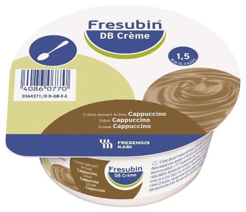 ФРЕЗУБИН ДИАБЕТ КРЕМ СО ВКУСОМ КАПУЧИНО ДЛЯ ЭНТЕРАЛЬНОГО ПИТАНИЯ - полноценное, высококалорийное (1,5 ккал/г) с высоким содержанием белка (20% энергии) пастообразное пероральное специализированное лечебное питание, содержащее пищевые волокна.