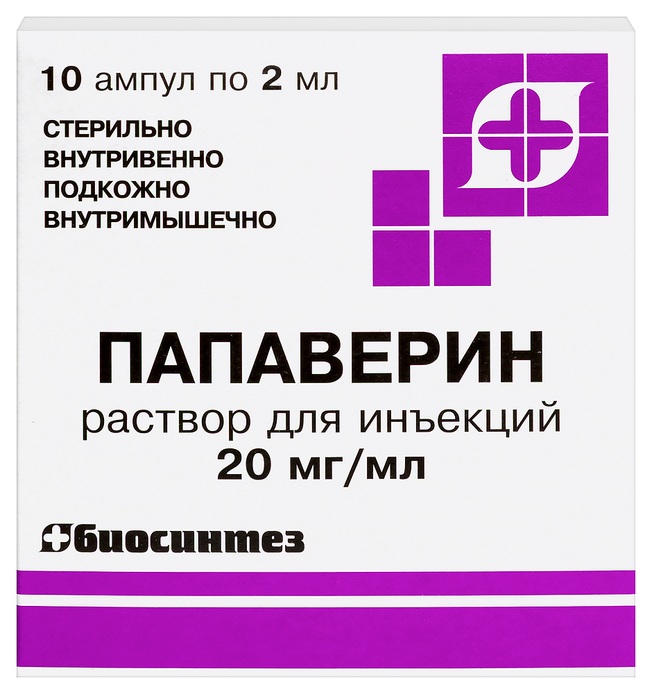 Папаверина гидрохлорид 20 мг/мл 10 шт. ампулы раствор для инъекций 2 мл