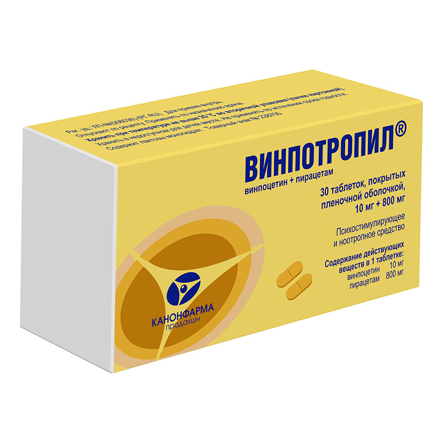 Винпоцетин быстро всасывается. Время достижения максимальной концентрации в плазме крови - 1 час. Всасывание происходит, главным образом, в проксимальных отделах желудочно-кишечного тракта. При прохождении через стенку кишечника не подвергается метаболизму. Максимальная концентрация в тканях отмечается через 2-4 ч после приёма внутрь. Связь с белками - 66%, биодоступность при приёме внутрь - 7%. Клиренс 66,7 л/ч, превышает плазменный объём печени (50 л/ч), что свидетельствует о внепечёночном метаболизме. При повторных приёмах кинетика носит линейный характер. Период полувыведения у человека 4,83±1,29 ч. Выводится почками и через кишечник в соотношении 3:2. Пирацетам после приема внутрь хорошо всасывается и проникает в различные органы и ткани. Биодоступность составляет около 95 %. Максимальная концентрация в крови достигается через 0,5-1,0 ч после приема внутрь. Проникает через гемато-энцефалический барьер, накапливается в мозговой ткани через 1-4 ч после приема внутрь. Из спинно­мозговой жидкости выводится значительно медленнее, чем из других тканей. Практически не подвергается биотрансформации и на 2/3 выделяется почками в неизменном виде в течение 30 ч. Период полувыведения из плазмы - 4,5 ч, из головного мозга -7,7 ч.