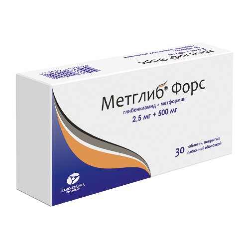 Метглиб Форс 2,5 мг + 500 мг 30 шт. таблетки, покрытые пленочной оболочкой