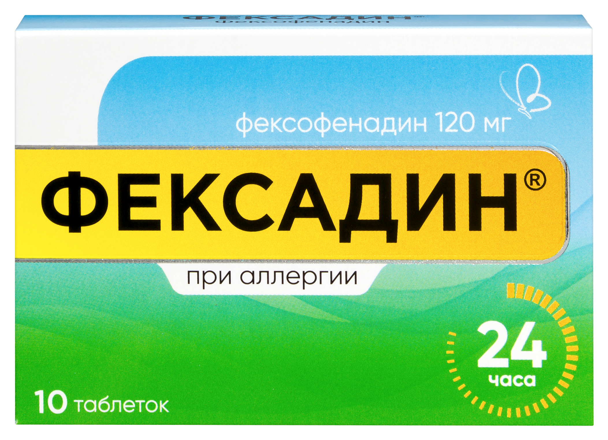Сезонный аллергический ринит: чихание, зуд, ринит, покраснение слизистой глаз и другие симптомы сенной лихорадки - таблетки, 120 мг;