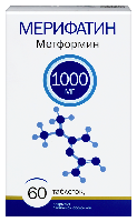 Перед приемом препарата Мерифатин проконсультируйтесь с лечащим врачом. Сообщите Вашему врачу в случае наличия следующих состояний/заболеваний, поскольку препарат следует принимать с осторожностью: • Ваш возраст старше 60 лет, и Вы выполняете тяжелую физическую работу. Это может вызывать повышенный риск развития лактоацидоза; • у Вас имеются нарушения функции почек; • Вы кормите ребенка грудью; • возраст Вашего ребенка, которому назначили препарат, от 10 до 12 лет. Риск развития лактоацидоза Мерифатин может вызывать очень редкую, но очень серьезную нежелательную реакцию, называемую лактоацидозом, в особенности у лиц с нарушением функции почек. Риск развития лактоацидоза также повышен у лиц с декомпенсированным диабетом, при серьезных инфекционных заболеваниях, длительном голодании или приеме алкоголя, обезвоживании (см. ниже), заболеваниях печени, а также при любых состояниях, при которых часть организма недостаточно снабжается кислородом (таких как острая болезнь сердца тяжелой степени). Если у Вас имеет место любое из вышеперечисленных обстоятельств, перед началом приема препарата следует проконсультироваться с лечащим врачом. Прекратите принимать Мерифатин на непродолжительное время при наличии состояний, которые могут быть связаны с обезвоживанием (значительные потери жидкости организмом) - таких, как тяжелая рвота, понос, лихорадка, воздействие высокой температуры или, если Вы потребляете меньше жидкости, чем обычно. Обратитесь за консультацией к врачу. Прекратите принимать препарат Мерифатин и немедленно обратитесь к врачу или в ближайшую больницу при появлении некоторых симптомов лактоацидоза, так как это состояние может привести к коме. К симптомам лактоацидоза относятся: • Рвота • Боль в животе • Мышечные судороги • Нарушение общего самочувствия, сопровождающееся сильной усталостью • Затрудненное дыхание • Снижение температуры тела и снижение частоты сердечных сокращений При лактоацидозе требуется неотложная медицинская помощь в условиях стационара. Влияние на функцию почек Поскольку препарат Мерифатин выводится почками, перед началом лечения и регулярно в последующем, Вам необходимо определять клиренс креатинина: