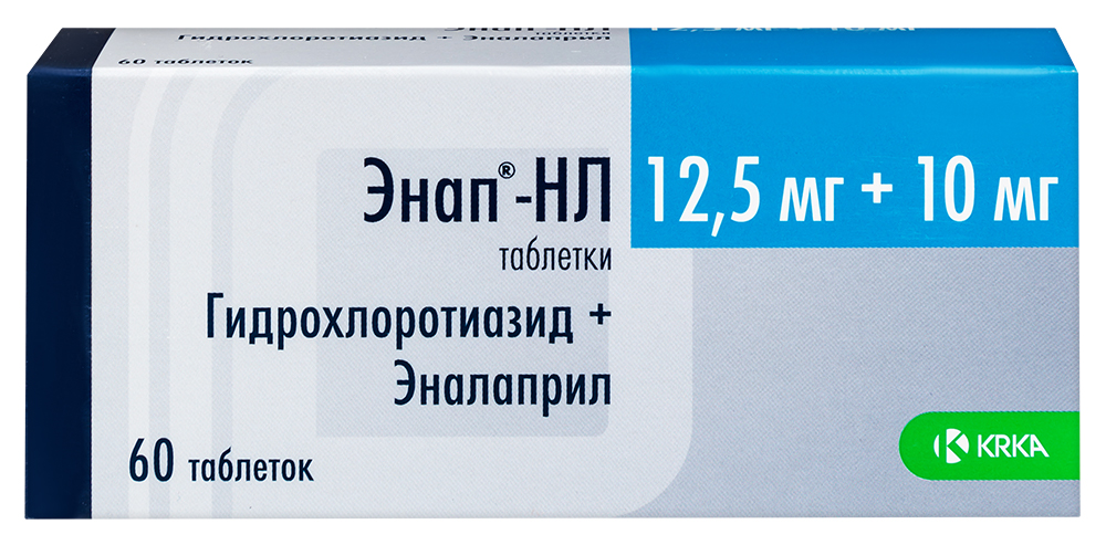Действующие вещества: гидрохлоротиазид 12,50 мг, эналаприла малеат 10,00 мг