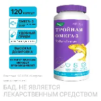 Тройная Омега-3 - биологически активная добавка (БАД) к пище. Тройная Омега-3 от компании Эвалар – это омега фармацевтического качества. Она содержит максимум омега-3 в каждой капсуле – 950 мг, и отличается высоким содержанием ЭПК и ДГК. Капсулы Тройной Омеги Эвалар в 3 раза сильнее обычных, и выгоднее зарубежного аналога. Для производства этих капсул используется сырье высочайшего качества от ведущих мировых производителей с исключительно высокой степенью очистки. Омега-3 получают из рыб холодных морей. Качество препарата гарантировано международным стандартом GMP. Регулярный прием Тройной Омега-3 Эвалар помогает укрепить сердечно-сосудистую систему, улучшить кровообращение, обеспечить нормальный уровень холестерина в крови, а также поддержать зрение, здоровье суставов, работу иммунной системы и мозга. Препарат разрешен беременным и кормящим женщинам. Взрослым рекомендуется принимать по 1 капсуле 1 раз в день во время еды. Продолжительность приема – 1 месяц. Перед применением рекомендуется проконсультироваться с врачом.