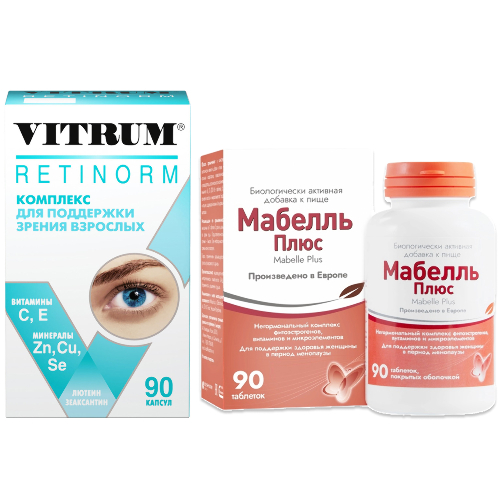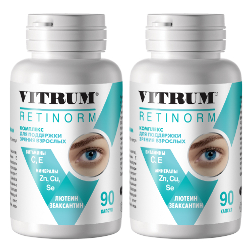 ВИТРУМ РЕТИНОРМ (VITRUM RETINORM) - Биологически активная добавка (БАД) к пище - входящие в состав БАД лютеин, зеаксантин, витамины С, Е и микроэлементы способствуют нормализации обменных процессов в тканях глаза, могут способствовать снижению риска развития возрастных изменений глаз.