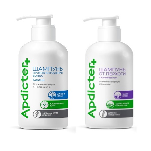 APDICTER+ ШАМПУНЬ ПРОТИВ ВЫПАДЕНИЯ ВОЛОС С БИОТИНОМ - комплекс актив подходит для всех типов волос. Внешний вид и свойства: Гелеобразная прозрачная текстура, бесцветная. Приятный ненавязчивый аромат растительных экстрактов придает ощущение свежести.