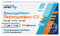 Амлодипин+периндоприл-сз 10 мг + 8 мг 30 шт. блистер таблетки