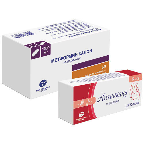 Ангиаканд можно применять совместно с другими препаратами, применяемыми при терапии хронической сердечной недостаточности, например, ингибиторами АПФ, бета-адреноблокаторами, диуретиками и сердечными гликозидами.