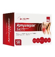 АРТРОВЕРОН 5В1 - Биологически активная добавка (БАД) к пище - источник глюкозамина, хондроитин сульфата и гиалуроновой кислоты. Внешний вид и свойства: порошок от белого до кремового цвета равномерно распределенными мелкими вкраплениями, обладающий свойством сыпучести. Допускается спрессовывание порошка, исчезающее при механическом воздействии. Капсулы твёрдые желатиновые разъёмные, с гладкой поверхностью; возможно кислотоустойчивое покрытие; возможно модифицированное высвобождение пролонгированного действия. Цвет капсул красно-коричневый. Запах и вкус свойственные ингредиентам.