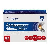 АРТРОВЕРОН АДВАНС - Биологически активная добавка (БАД) к пище - источник глюкозамина, хондроитин сульфата и гиалуроновой кислоты, содержащей ПНЖК Омега-3 (эйкозапентаеновую кислоту). Внешний вид и свойства: порошок от белого до кремового цвета равномерно распределенными мелкими вкраплениями, обладающий свойством сыпучести. Допускается спрессовывание порошка, исчезающее при механическом воздействии. Капсулы твёрдые желатиновые разъёмные, с гладкой поверхностью; возможно кислотоустойчивое покрытие; возможно модифицированное высвобождение пролонгированного действия. Цвет капсул красно-коричневый. Запах и вкус свойственные ингредиентам.