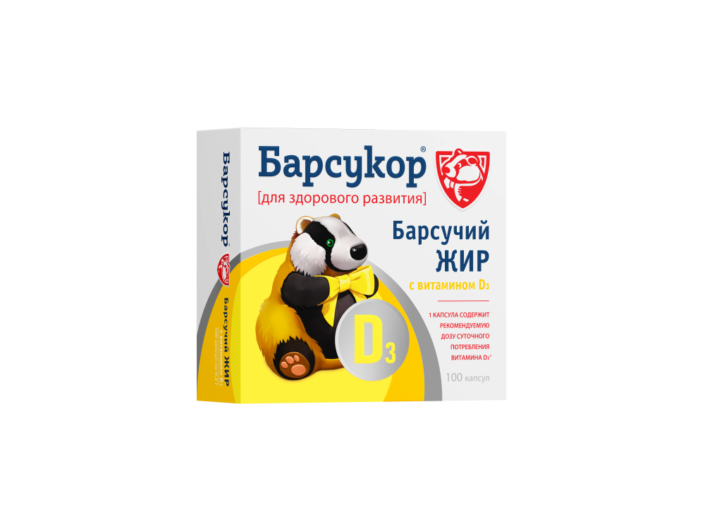 БАРСУКОР барсучий жир с витамином Д3 - способствует общему укреплению организма и поддержанию иммунитета в сезон простуд.