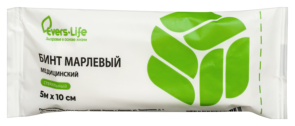 БИНТ МАРЛЕВЫЙ МЕДИЦИНСКИЙ СТЕРИЛЬНЫЙ 5МХ10СМ - ТМ Evers Life