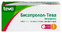 Бисопролол-тева 5 мг 50 шт. таблетки, покрытые пленочной оболочкой