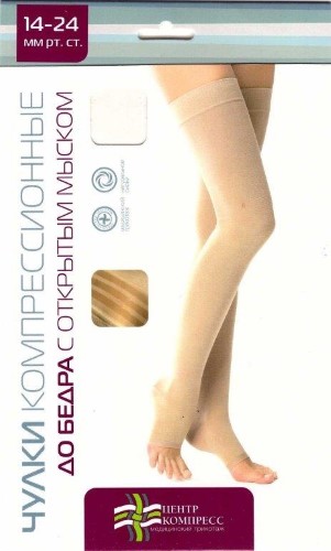 Чулок компрессионный кругловязаный для лечения венозной недостаточности и лимфостаза до бедра с открытым мыском