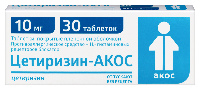 Цетиризин-акос 10 мг 30 шт. таблетки, покрытые пленочной оболочкой