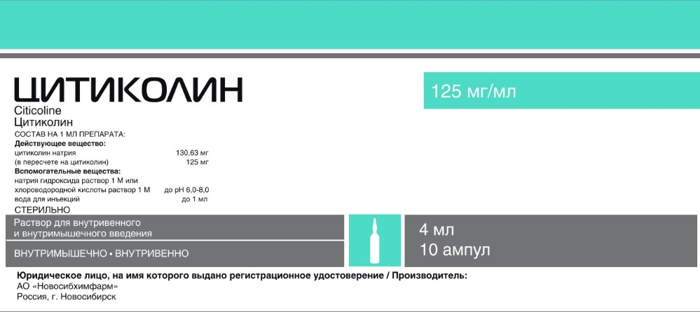 Каждый мл раствора для внутривенного и внутримышечного введения содержит цитиколина натрия (в пересчете на цитиколин) 125 мг.