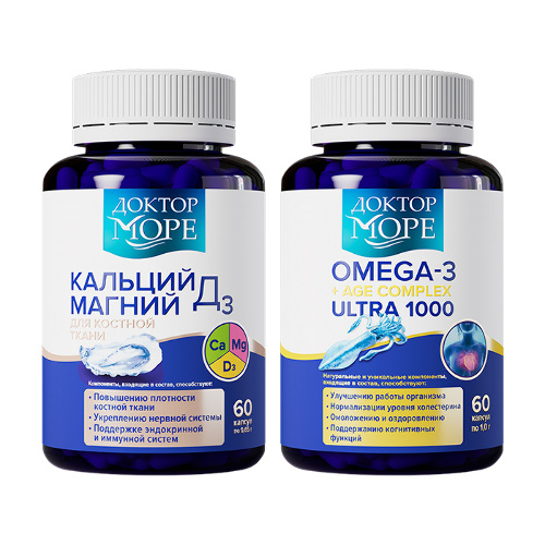 Доктор море кальций магний д 3 - это высококачественный биологически активный комплекс, разработанный для поддержки здоровья костей, помогает поддержать здоровье опорно-двигательного аппарата, работу нервной системы и состоятельность иммунитета. Каждая капсула содержит оптимальную комбинацию кальция, магния и витамина Д3, которые играют важную роль в обмене веществ, укреплении костной ткани, повышении иммунитета и снижении риска развития остеопороза. Данный препарат рекомендуется использовать взрослым людям, особенно тем, у кого наблюдаются проблемы с костями, зубами или мышцами. Кроме того, Доктор Море Кальций Магний Д3 также может быть полезен при снижении уровня кальция и магния в организме, а также при повышенных физических нагрузках и стрессе. В одной упаковке содержится 60 капсул, каждая из которых имеет массу 650 мг. Принимать препарат рекомендуется по 1 капсуле дважды в день во время еды, запивая достаточным количеством воды. Перед использованием рекомендуется проконсультироваться с врачом.